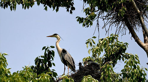 苏家营子村位于朝阳县七道岭乡南部,小凌河支流在此流过。苏家营子村可谓是神奇的土地,上千只苍鹭在此繁衍生息,整洁的小村子里四面环山,小河潺流。十几颗大杨树上鸟巢朵朵,灰白的苍鹭往来盘旋。苍鹭在这里繁衍生息已有一百余年,苍鹭又称灰鹭,国家二级野生保护动物,当地人称为长脖子老等,每年春季3月末4月初从南方迁徙此地繁殖后代,10月初至10月末迁离此地。