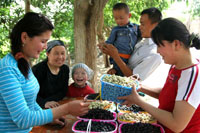 桑葚熟了的季节,具有经济头脑的维吾尔人就在桑树下的地上铺布单,用力摇晃树干,桑葚就会纷纷落下,小心翼翼拾起装到塑料篓中,拿到街上售卖。可能是桑葚不好储存的缘故,大多的时候树主人仍把桑葚当做一种野果,人们仍可以随意进行采摘,主人并不会在意。