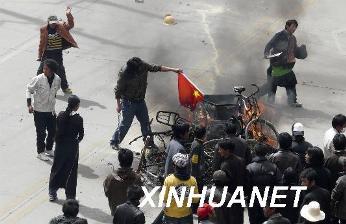 据初步统计,暴徒在拉萨市已造成包括3所中小学在内的22处建筑物被烧,数十辆警车和民用车辆被焚毁,致使10名无辜群众被杀死、烧死,公安民警、武警战士重伤12人,其中2人生命垂危。