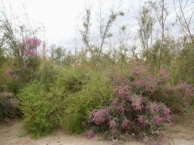 洁娇贵的玫瑰已不见其尊容,红柳却能在干热的境态下,绽放出一串串缀满枝头的紫红色鲜花, 像亭亭的少女,若灿烂的红霞,把毫无生气的大地装扮得色彩斑斓,释放出她那深沉、高尚的情怀。
