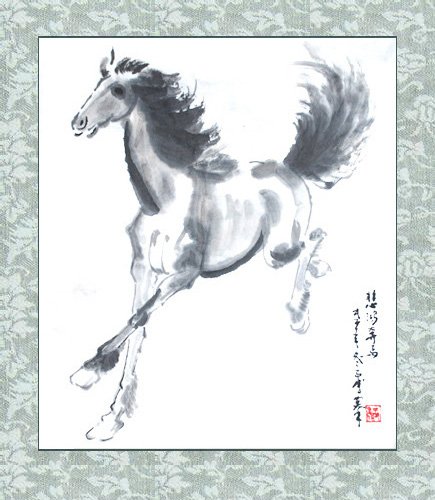 摹徐悲鸿奔马图