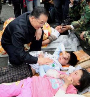 北京乘专机赶往地震灾区坐镇指挥救灾,在专机上就发表讲话,安排抗震救灾工作,到达四川后,5天走遍四川所有重灾区。国家主席胡锦涛16日到四川灾区视察,他驱车赶赴受灾严重的绵阳市北川羌族自治县,看望慰问受灾群众,指导抗震救灾工作。